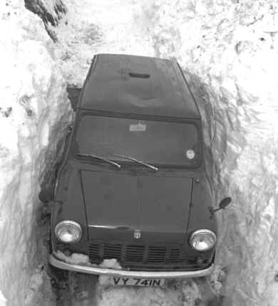 car and not being able to see over a drift just outside Langton which